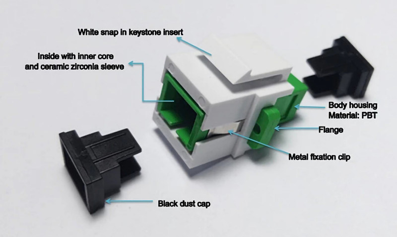 SC APC Simplex Keystone Adapter με δοκιμή φόρτωσης φλάντζης ≥ 70 N Θέρμανση αποθήκευσης 40°C έως 85°C