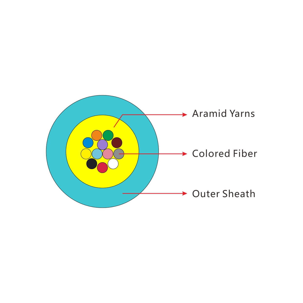 Το καλώδιο GJFV κατασκευάζεται εφαρμόζοντας ομοιόμορφα νήματα από νήματα αραμιδίου καθώς ολοκληρώνεται το στοιχείο αντοχής πάνω από φ250μm ίνες, στρέφοντας τις ίνες με νήματα αραμιδίου.