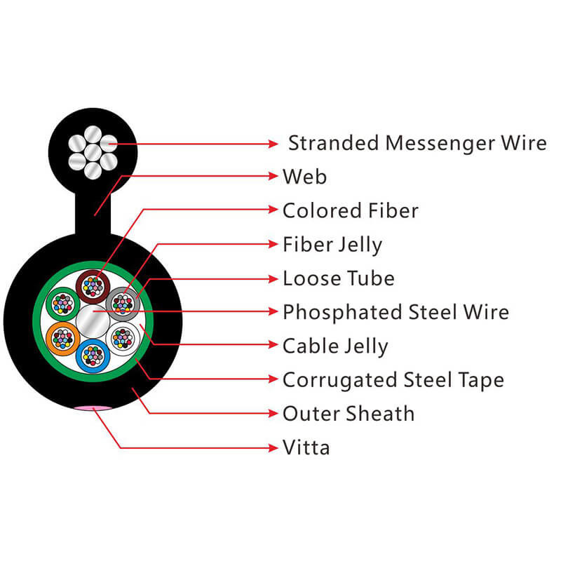 Οι ίνες τοποθετούνται σε ένα χαλαρό σωλήνα από πλαστικό υψηλού μορίου.Ένα ατσάλινο σύρμα τοποθετεί στο κέντρο του πυρήνα ως ένα μέταλλο δύναμη μέλοςΟι σωλήνες (και τα υλικά πλήρωσης) συνδέονται γύρω από το στοιχείο αντοχής σε ένα συμπαγές και κυκλικό πυρήνα καλωδίου.αυτό το τμήμα του καλωδίου συνοδεύεται από τα νήματα που έχουν κολλήσει ως το υποστηρικτικό μέρος συμπληρώνεται με μια περίβλημα πολυαιθυλενίου (PE) που θα είναι η δομή του σχήματος 8Αυτό το είδος καλωδίου εφαρμόζεται ειδικά για αυτόνομη εναέρια εγκατάσταση.