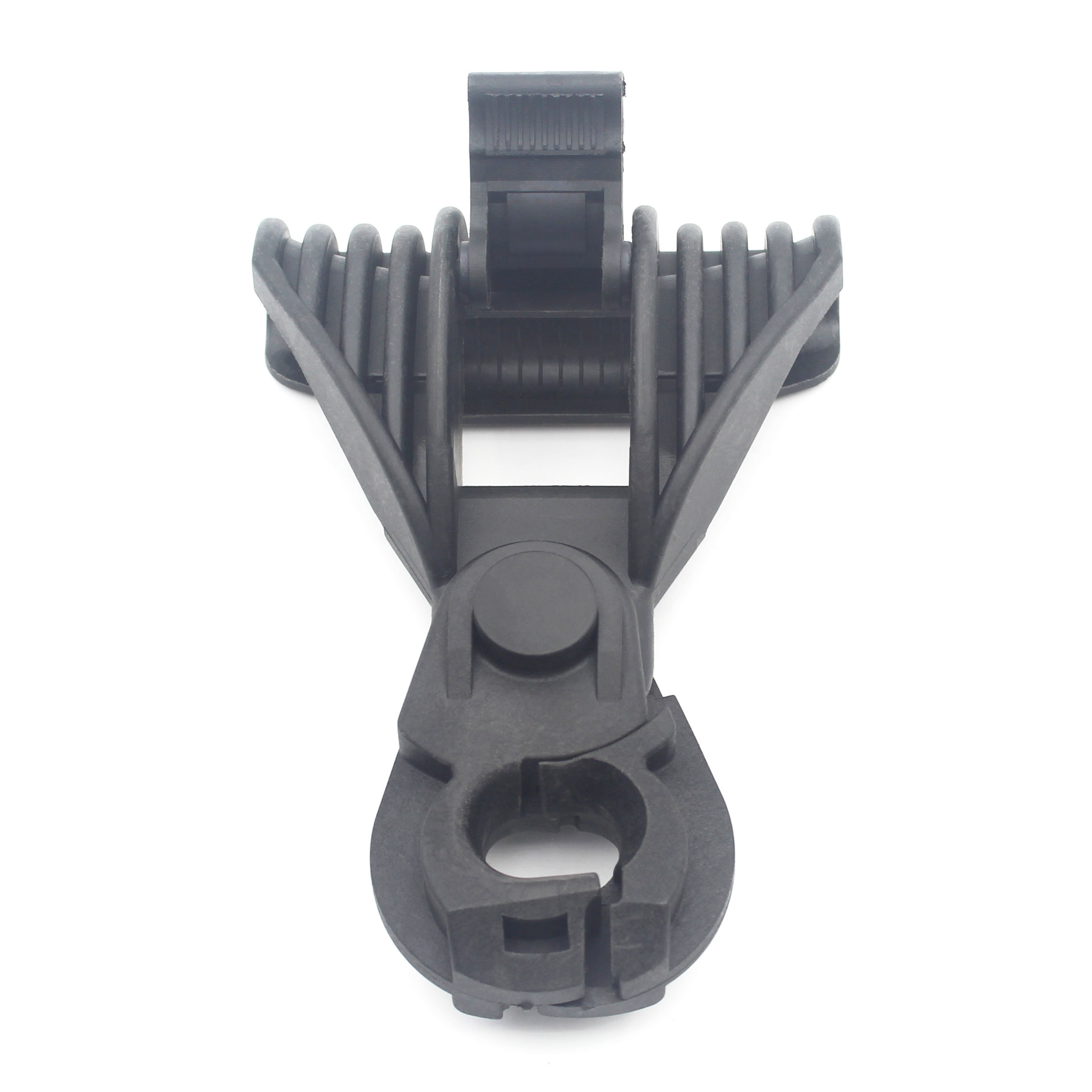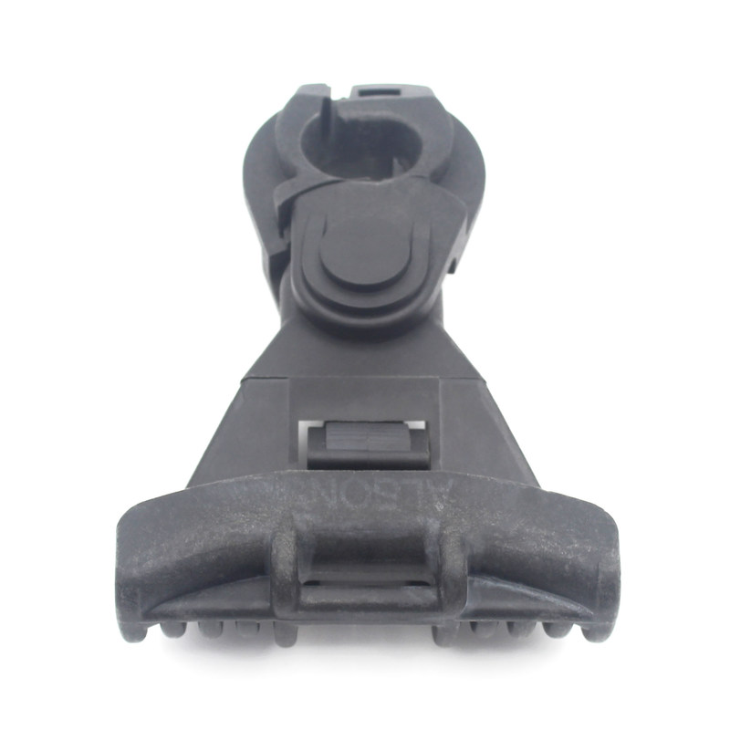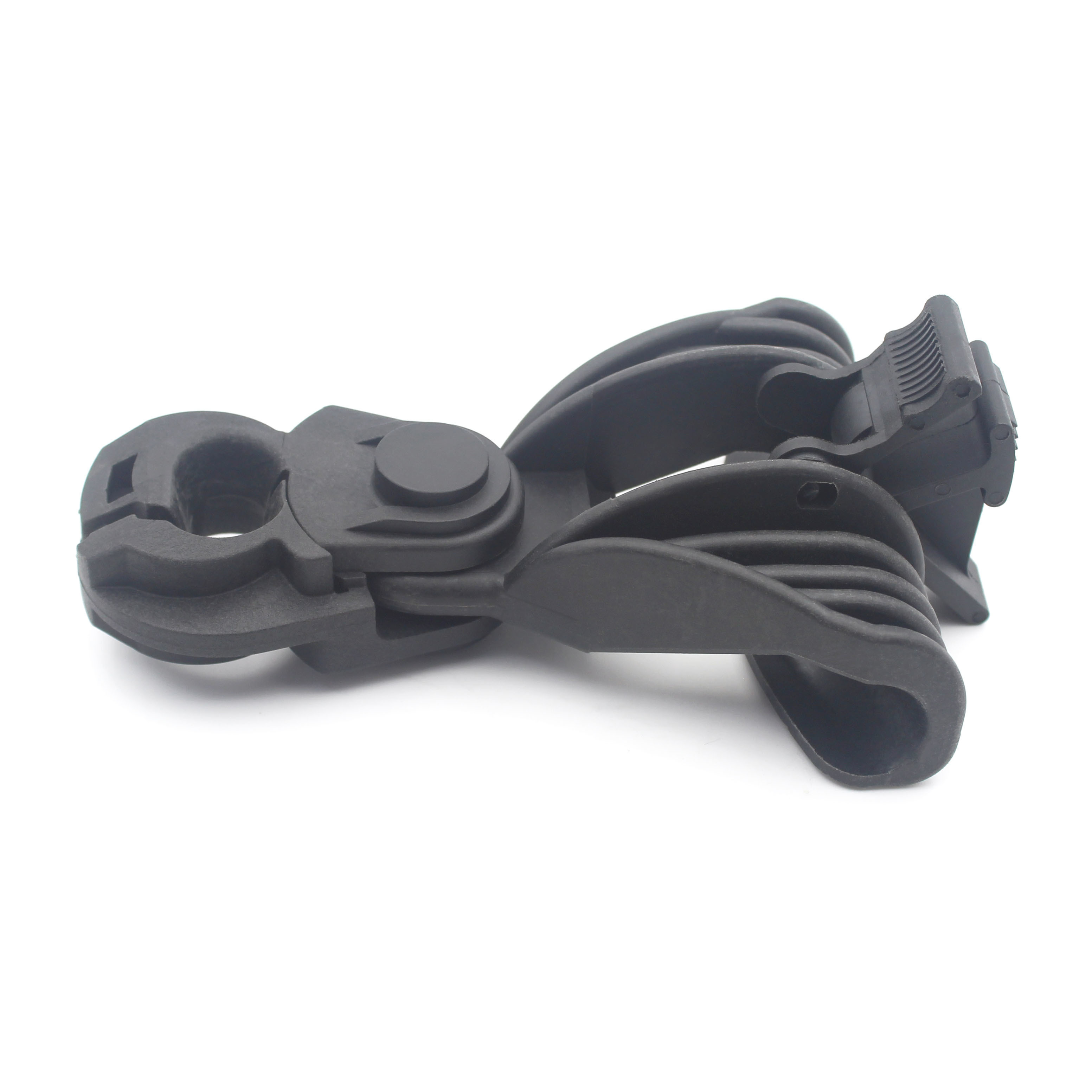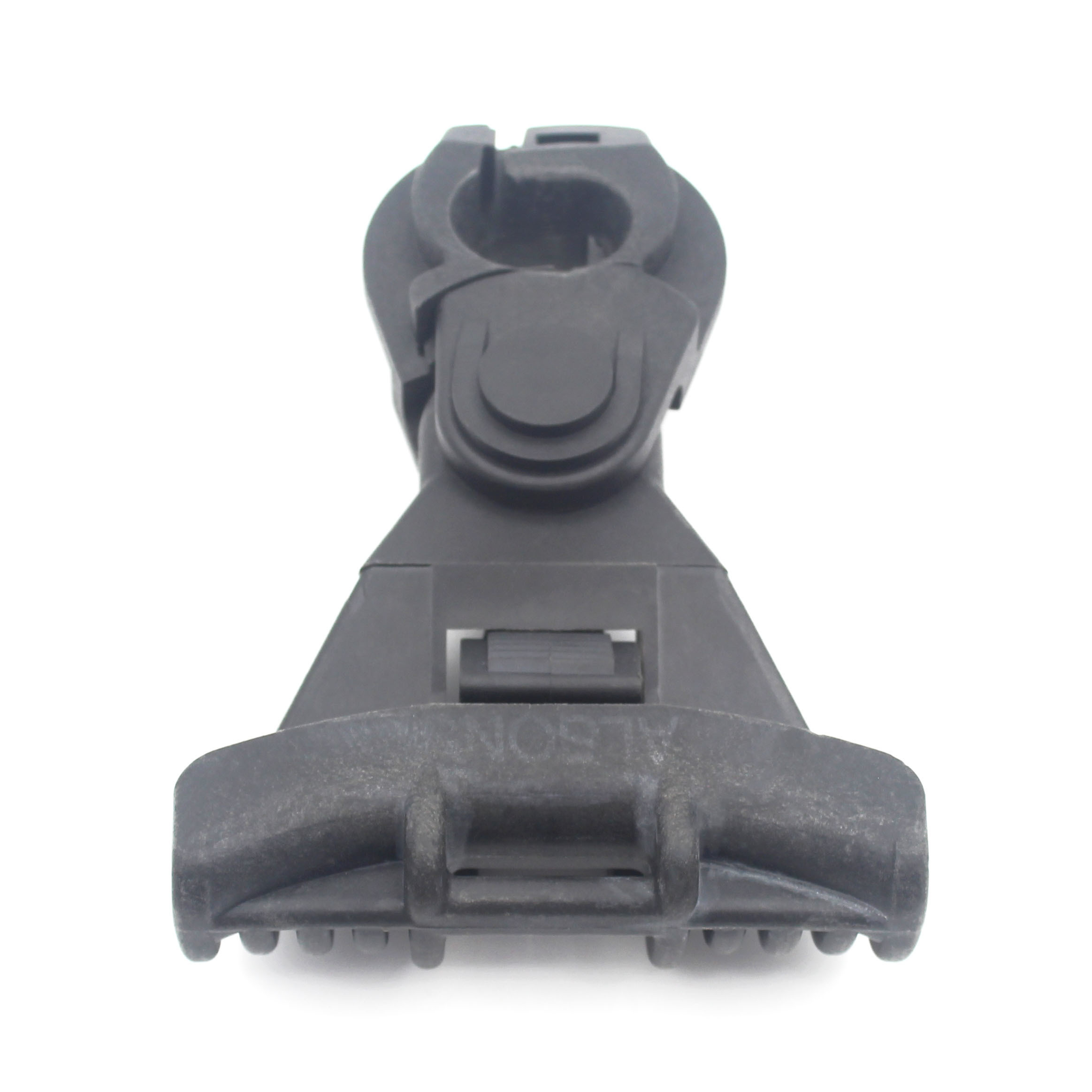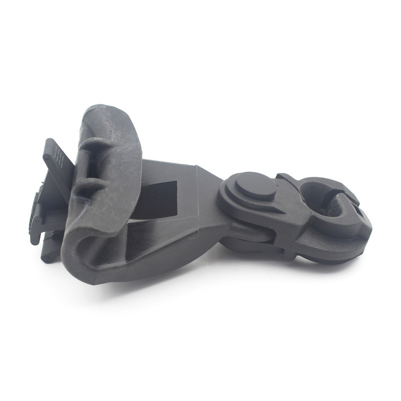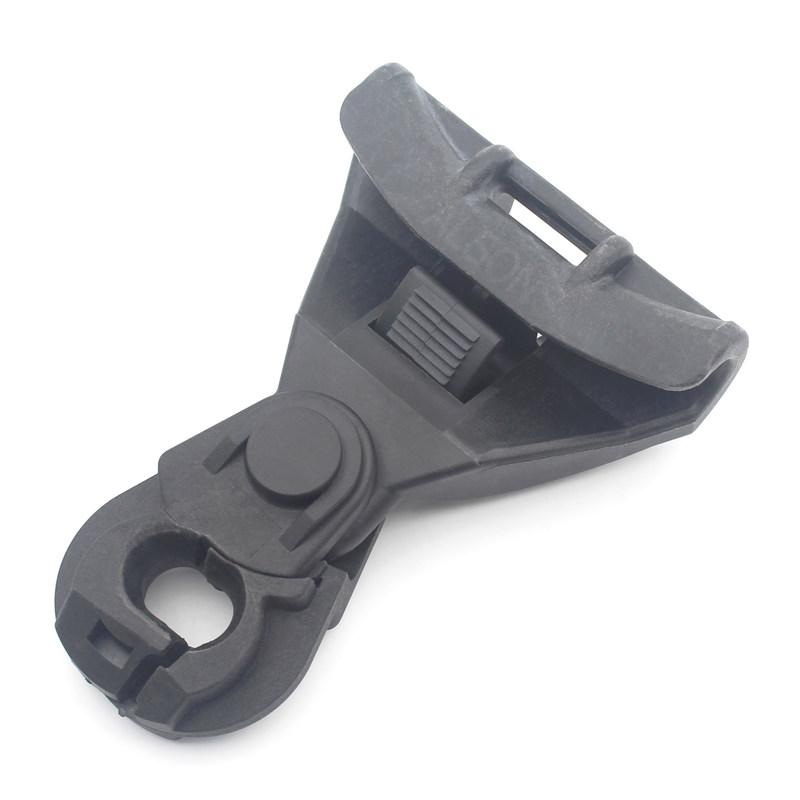 Το σώμα του σφιγκτήρα ανάρτησης είναι εφοδιασμένο με το σφραγιστικό κομμάτι που αποτελείται από βίδα και σφιγκτήρα, το οποίο επιτρέπει την τοποθέτηση του καλωδίου αγγελιοφόρου στο αυλάκι ανάρτησης.ο κινητός κρίκοςΗ βίδα και η σφραγίδα είναι κατασκευασμένες από ενισχυμένο θερμοπλαστικό, ένα υλικό ανθεκτικό στις ακτινοβολίες U-V με μηχανικές και κλιματικές ιδιότητες.Ο σφιγκτήρας ανάρτησης είναι ευέλικτος στην κάθετη κατεύθυνση λόγω της κινητής σύνδεσης και χρησίμευσε επίσης ως αδύναμος κρίκος στην ανάρτηση του εναέριου καλωδίου.