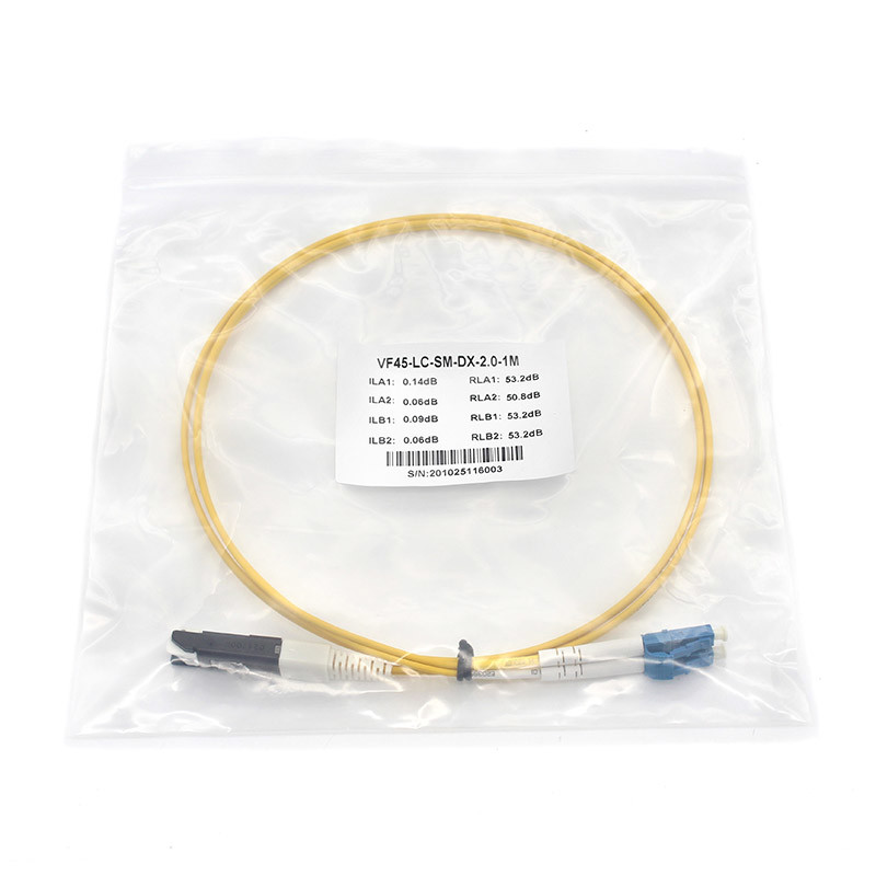 Μοναδικού τρόπου ινώδες οπτικό καλώδιο επικάλυψης με PVC Duplex LC UPC έως VF45 για λύσεις ευρείας ζώνης ινών